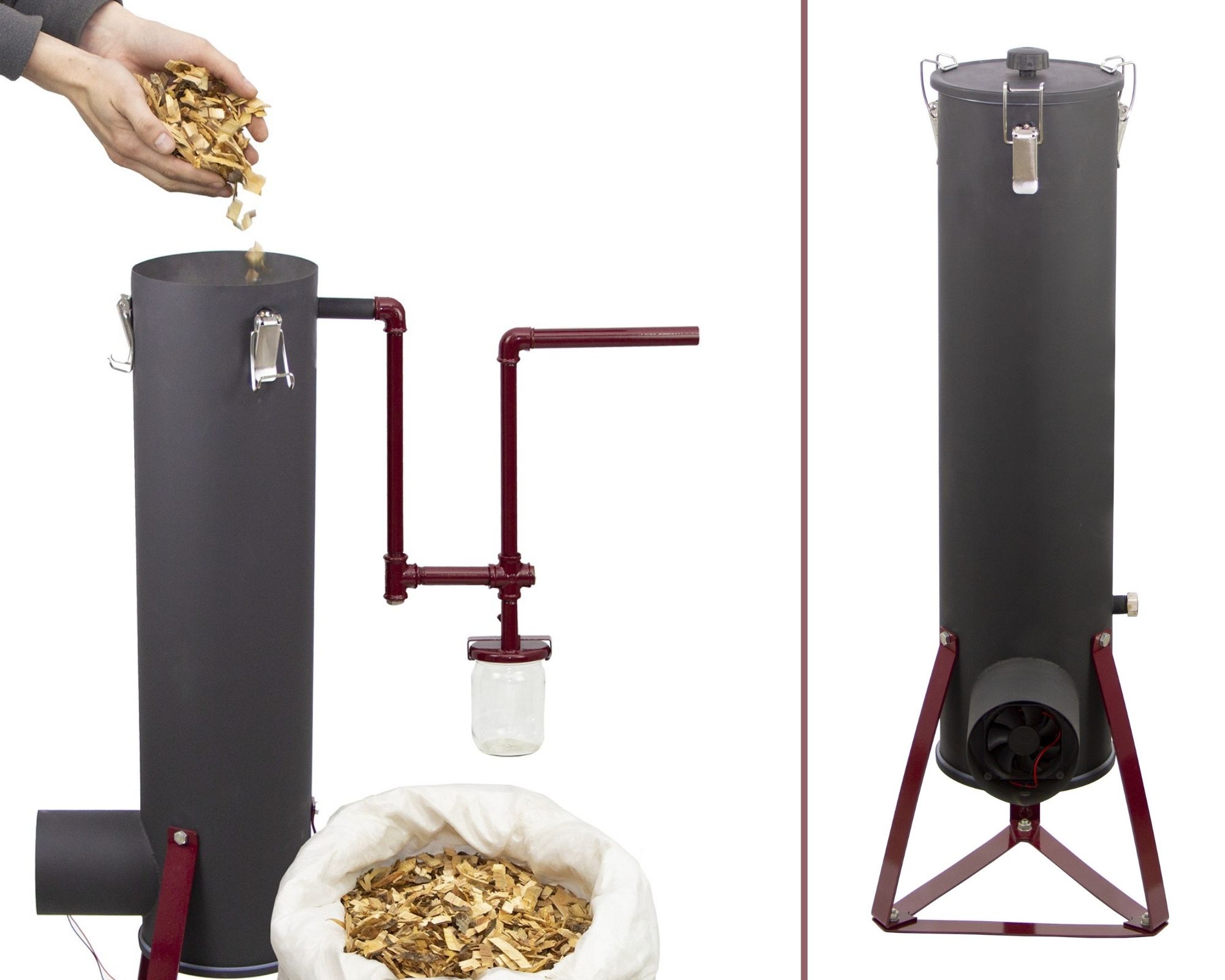 В оборудовании для холодного копчения очаг с тлеющей щепой и коптильная камера находятся на определенном расстоянии, чтобы дым при прохождении по дымопроводу успел охладиться до нужной температуры. Коптильни холодного копчения, изготовленные своими руками, занимают много места, за их работой необходимо постоянно следить.