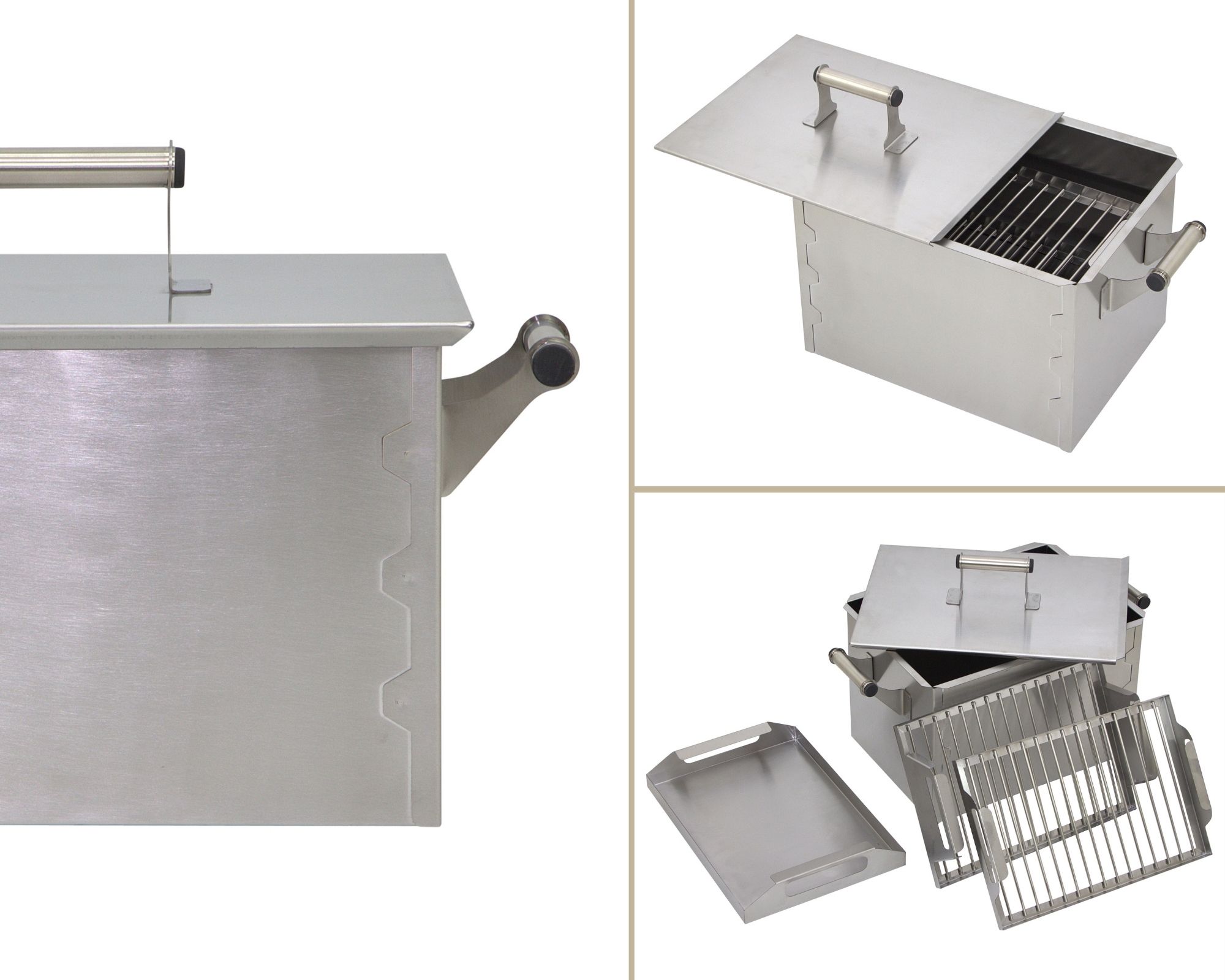 • Оптимальным материалом для такого оборудования является нержавеющая сталь пищевого назначения. Чтобы коптильня проработала долгое время, толщина дна и стенок не должна быть менее 1,5 миллиметров. Необходимо учитывать, что выбрать слишком толстый металл – это тоже не лучший вариант, так как оборудование будет слишком тяжелым.