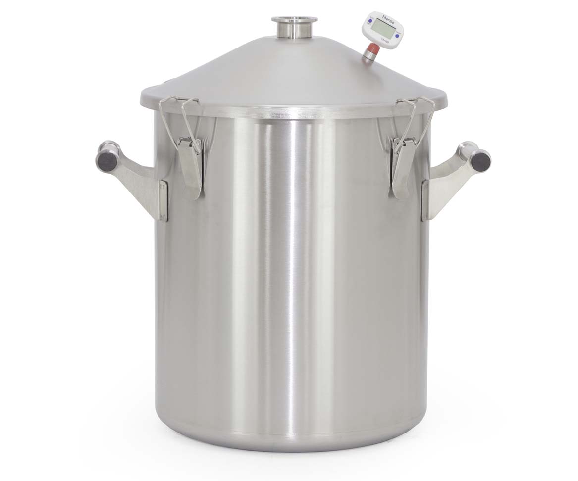 Мы производим куб объемом 25 литров для самогонного аппарата с уникальной системой крепления купольной крышки на 4-х застежках. Удобная система закрытия крышки обеспечивает надежность и герметичность соединения. На крышке предусмотрен выход под кламп 1.5 дюйма. Кубы для перегонки изготовлены по уникальной технологии с усиленным дном и ребрами жесткости. Оптимальные размеры куба позволяют его с комфортом использовать на любой кухонной плите.